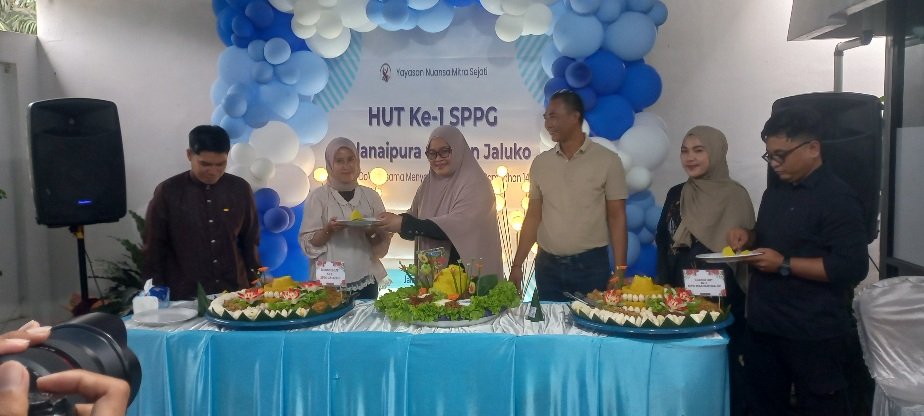 Novillya Dewi, atau Ibu Novi, menyuarakan kebanggaannya di hadapan puluhan undangan. “Sebenarnya saya tak bisa berkata-kata saking bangganya dengan teman-teman pegawai SPPG seperti akuntan, ahli gizi, relawan, para pendamping, serta pihak yang terlibat. Karena kerja keras serta ikhlas kita semua, kita bisa melalui semua rintangan sehingga bisa melewati usia satu tahun melayani penerima manfaat,” ujarnya dengan nada haru, menekankan nilai gotong royong yang jarang tergoyahkan di tengah keterbatasan infrastruktur lokal.