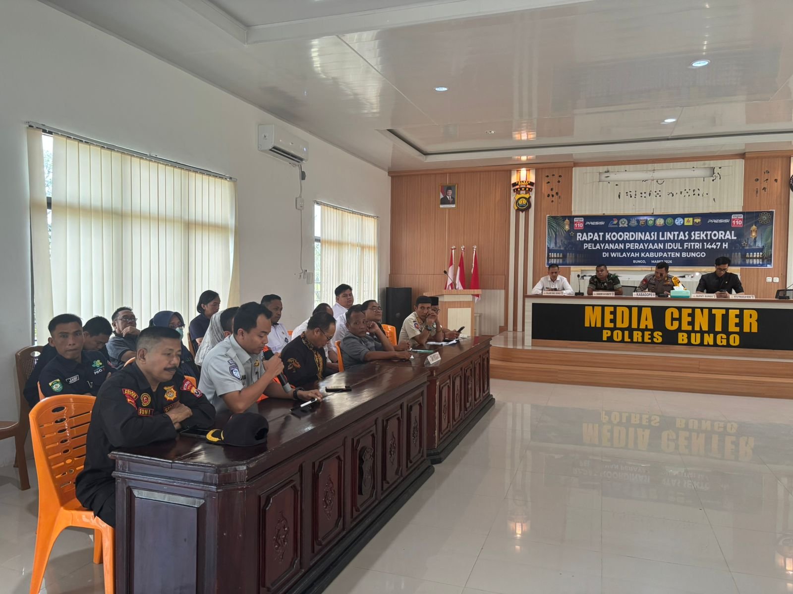 CB24.ID- Hari Rabu tanggal 04 Maret 2026, Kepala Jasa Raharja Cabang Muara Bungo, Juni Panto Susilo menghadiri Rapat Koordinasi (Rakor) Lintas Sektoral dalam rangka persiapan Operasi Pengamanan dan Perayaan Hari Raya Idul Fitri 1447 H Tahun 2026 yang diselenggarakan di Aula Polres Bungo. Kegiatan ini merupakan langkah strategis untuk memastikan kesiapan seluruh unsur terkait dalam memberikan rasa aman dan nyaman kepada masyarakat selama arus mudik dan arus balik Lebaran.
